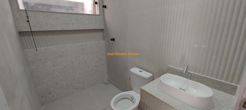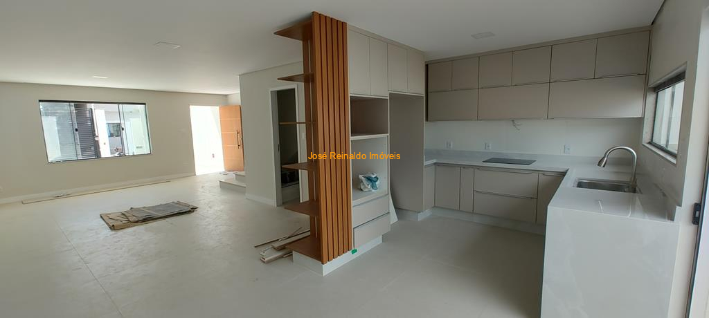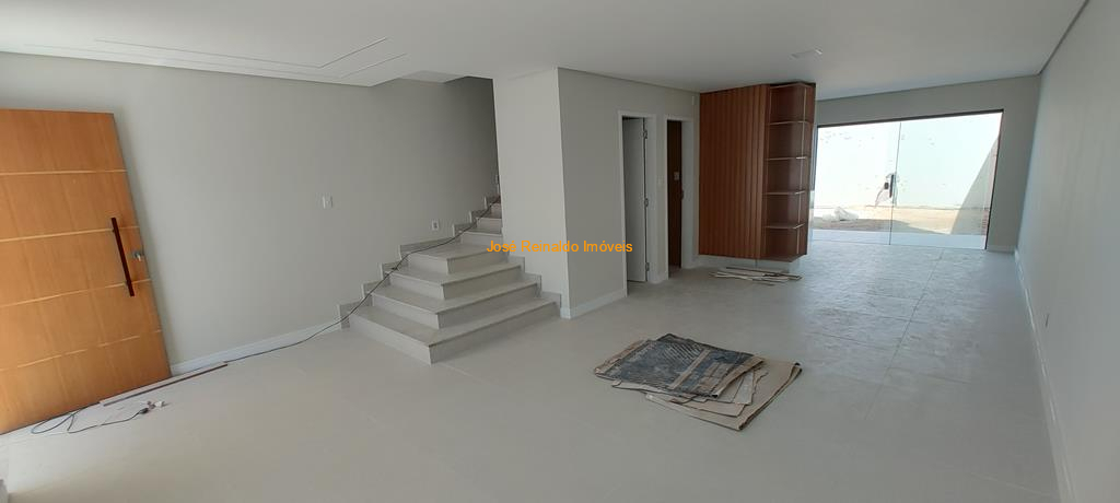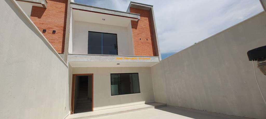 Excelente casa nova com 128 m² de área construída contendo: 4 Quartos (sendo 1 suíte com closet e varanda, 1 na parte de baixo, podendo ampliar área da cozinha), sala com lavabo e depósito, banheiro social, lavanderia, quintal e garagem.