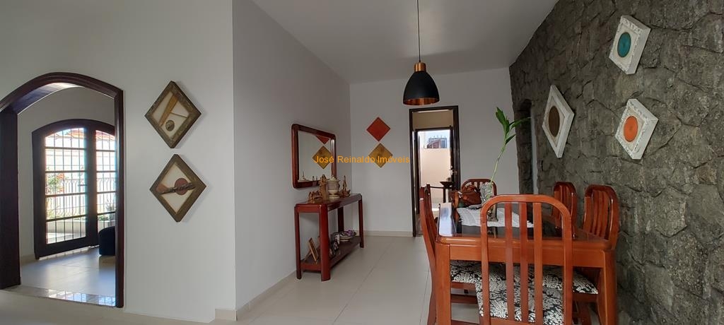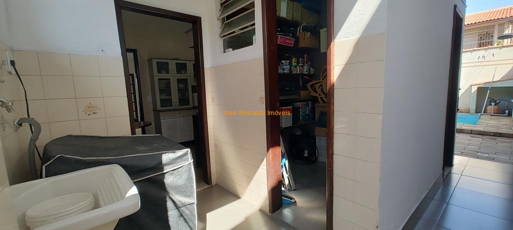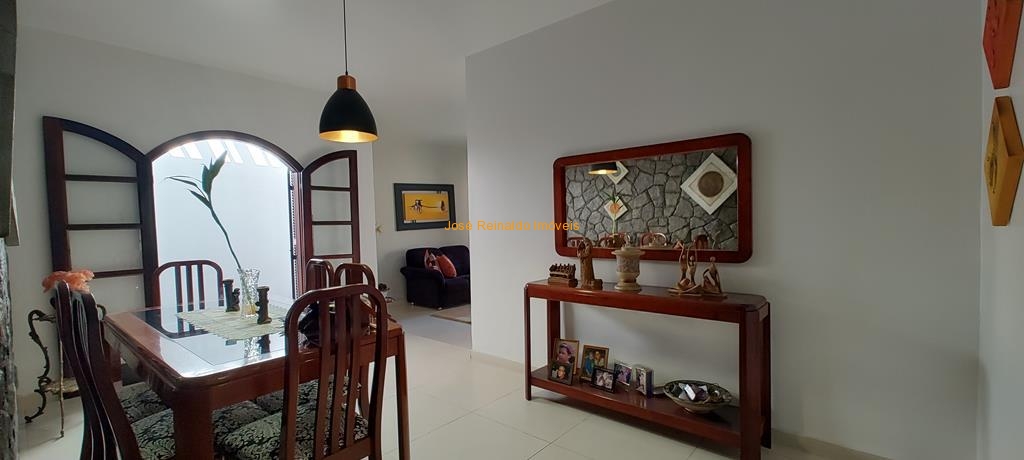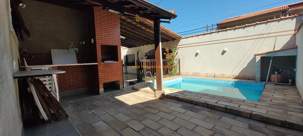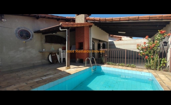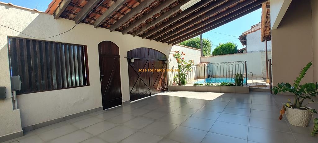Excelente casa térrea contendo: 3 quartos (sendo 1 suíte), sala de estar, sala de TV, sala de jantar com jardim de inverno, cozinha com armários, banheiro social, lavanderia, quarto de depósito, quintal com piscina, área de churrasqueira, banheiro externo e garagem para 2 carros.